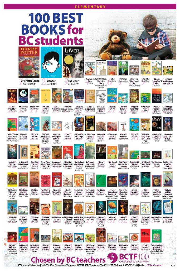 附:BC省教师联盟推荐小学阅读100本首选书书单: