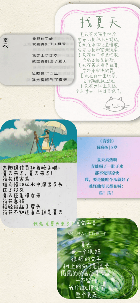 夏天,是一首写不完的诗,一支唱不尽的歌。孩子们用童真的语言描绘它,古人用诗意的笔触赞美它,儿歌则用轻快的节奏唱出它的快乐与自由。希望这些文字和旋律,能为你和孩子的夏天增添一份特别的温度。